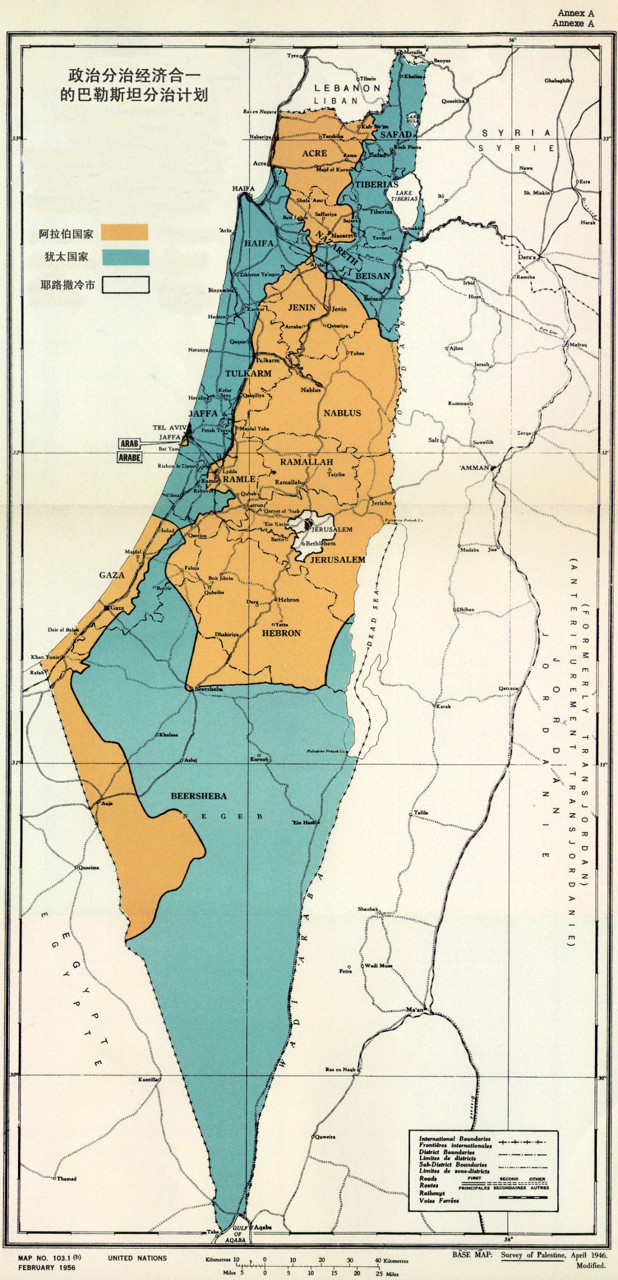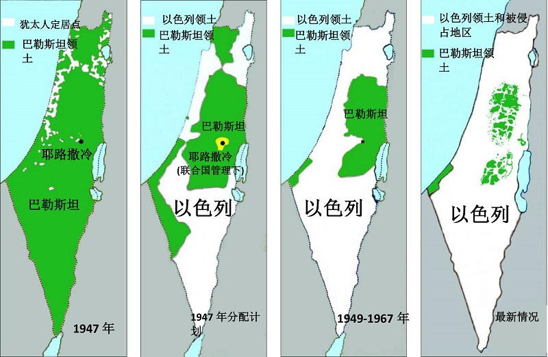 根据联合国181号决议,1948年5月14日英国终止对巴勒斯坦的托管,第二天,即5月15日,以色列宣布建国。但阿拉伯世界不予承认,巴勒斯坦国也一直没能建立。